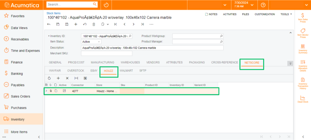 Ensure the stock item is associated with the respective marketplace on Acumatica.
