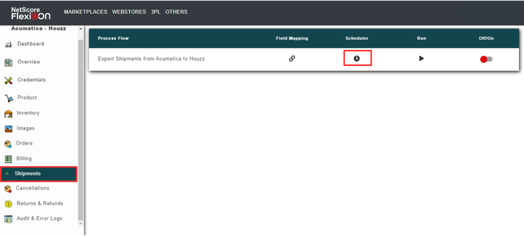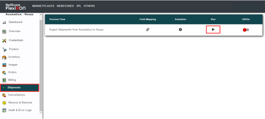 When shipment fails to update Houzz marketplace, the FlexiCon connector logs the error at the connector’s Audit and Error Logs window.