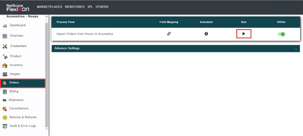 Ensure that the below mentioned advance settings on the FlexiCon Configuration module are defined, to sync an order to Acumatica.