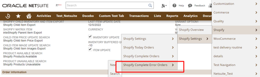 - And you can see the navigation below in screenshot (Shopify->Shopify Setting->Shopify Complete Error Orders).