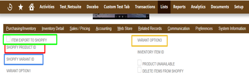 Make sure that the item export check box is checked, you can see the picture upon clicking on the above link, once the Product/Item got exported remaining field ids will be auto populated.